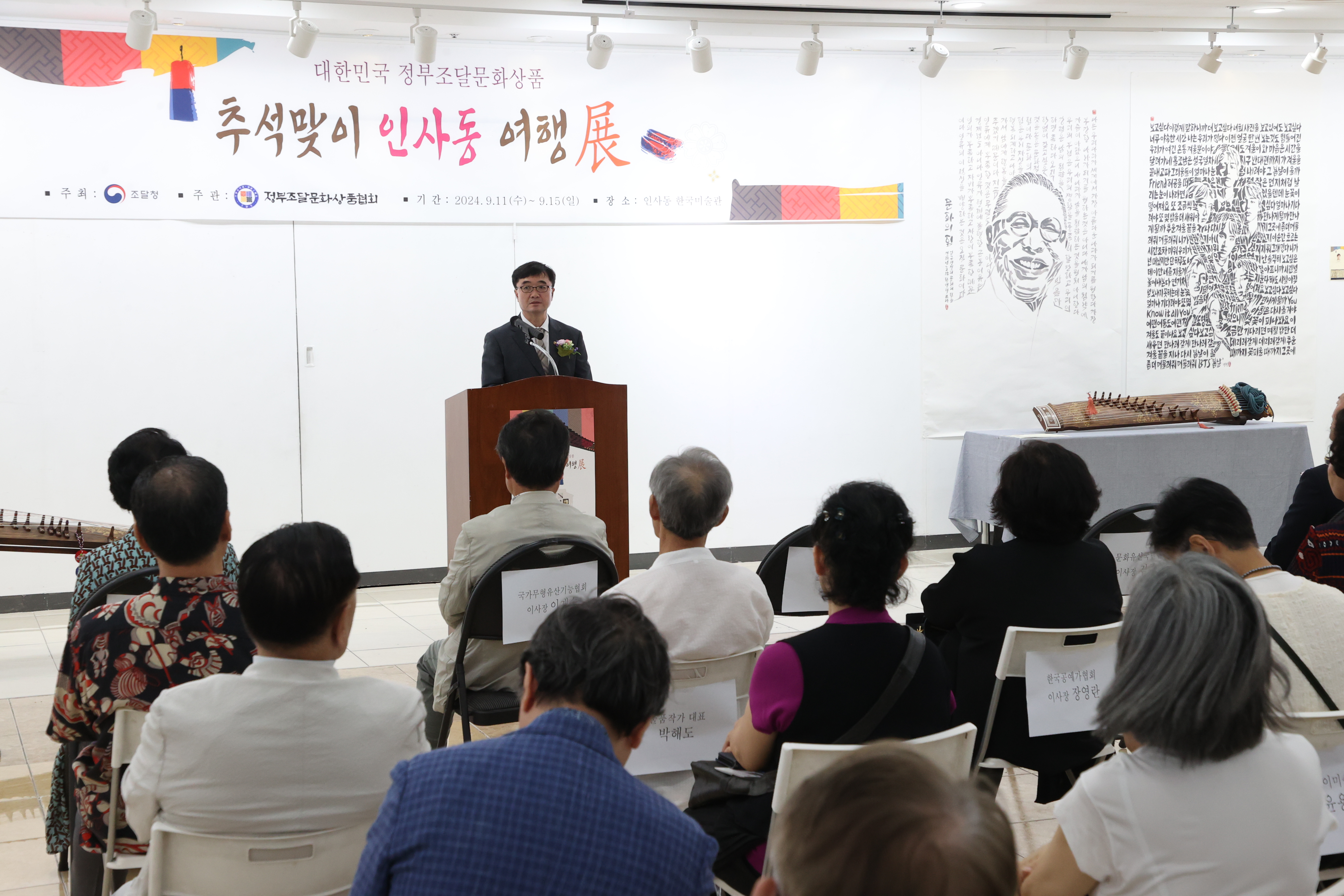 사진3_인사동 : 임기근 조달청장(가운데)이 11일 서울 인사동 한국미술관에서 열린 ‘정부조달문화상품 추석맞이 인사동 여행展’에서 인사말을 하고 있다.