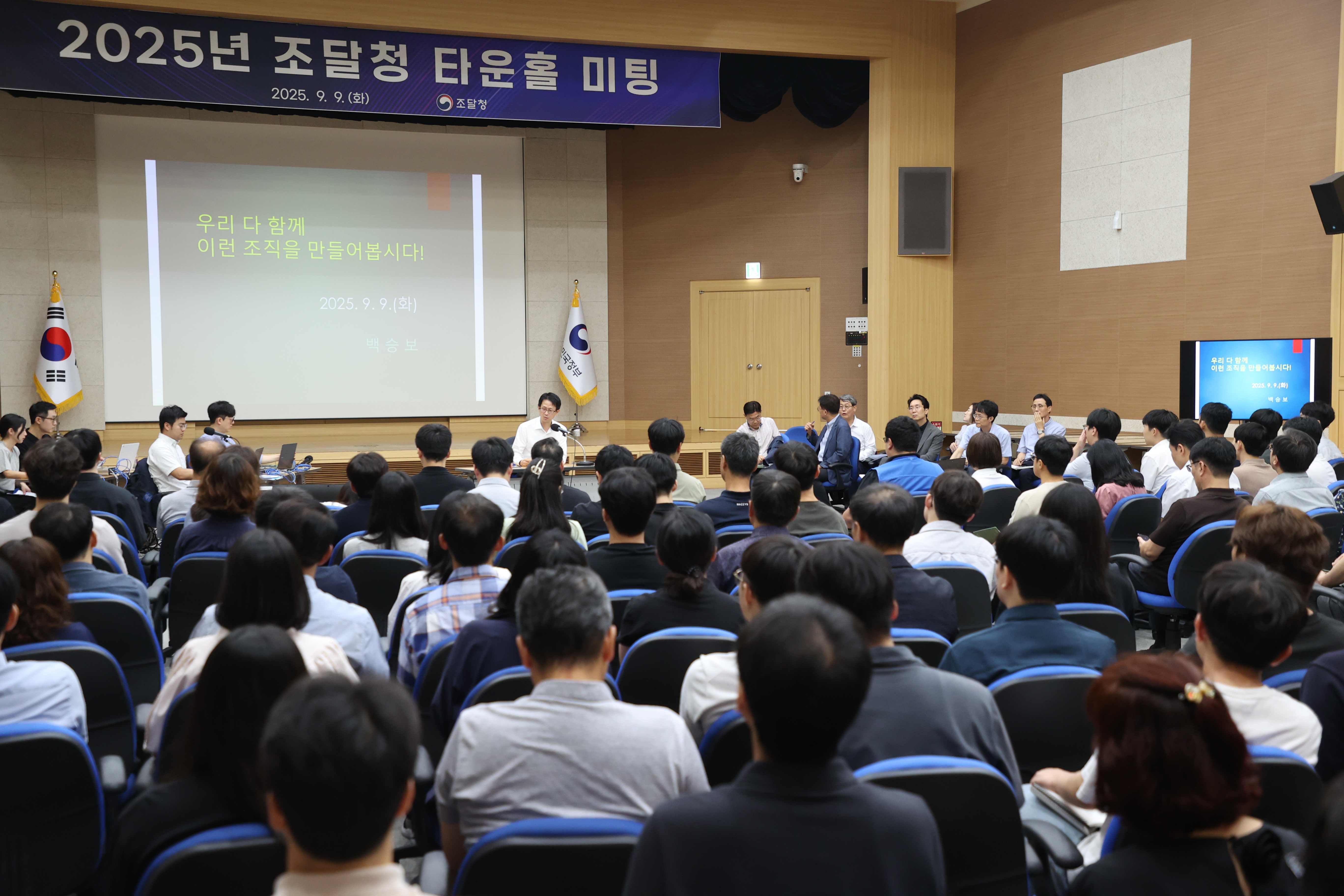 사진 1 : 조달청(청장 백승보)은 9월 9일 정부대전청사에서 전 직원이 참여하는 타운홀 미팅을 개최했다.