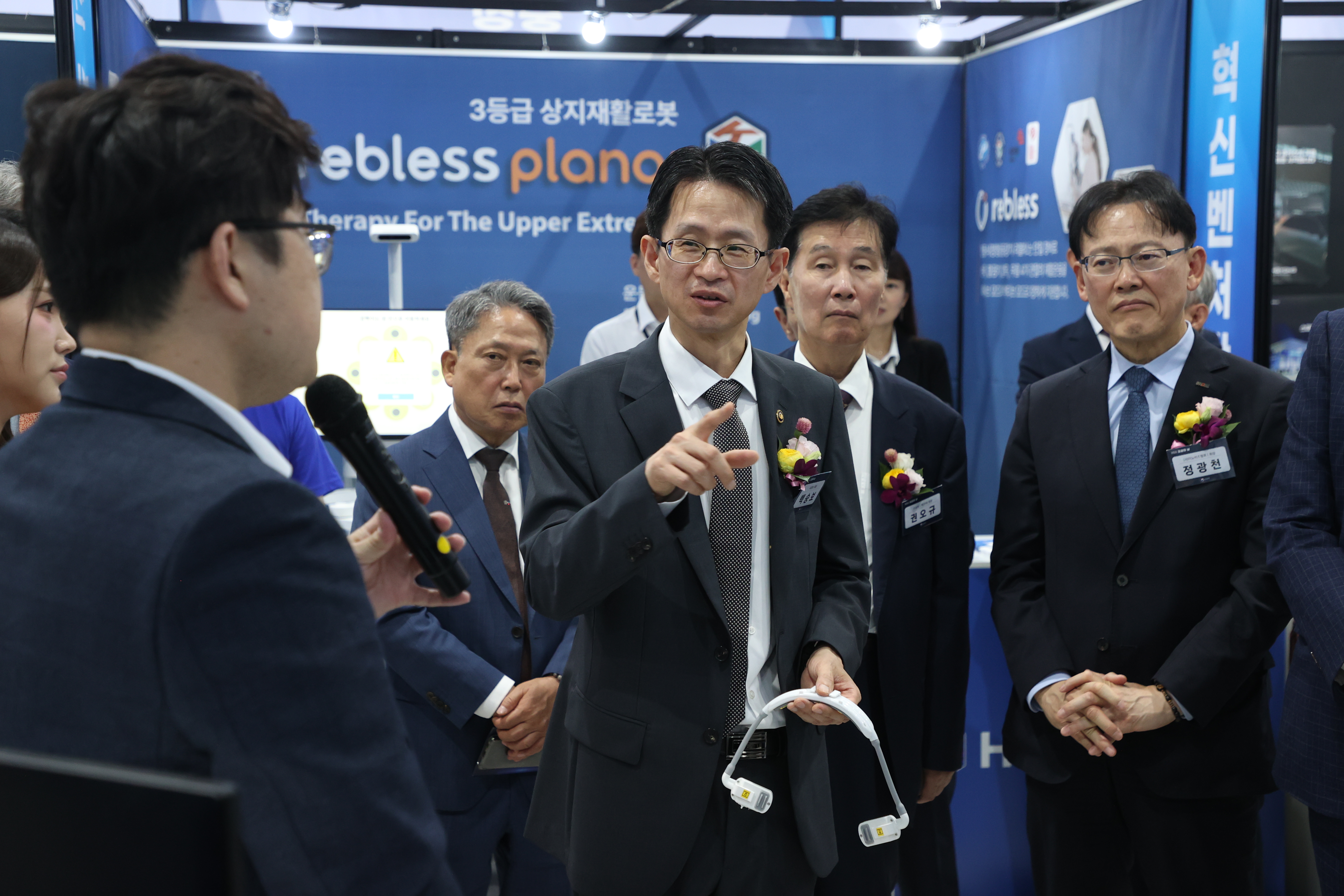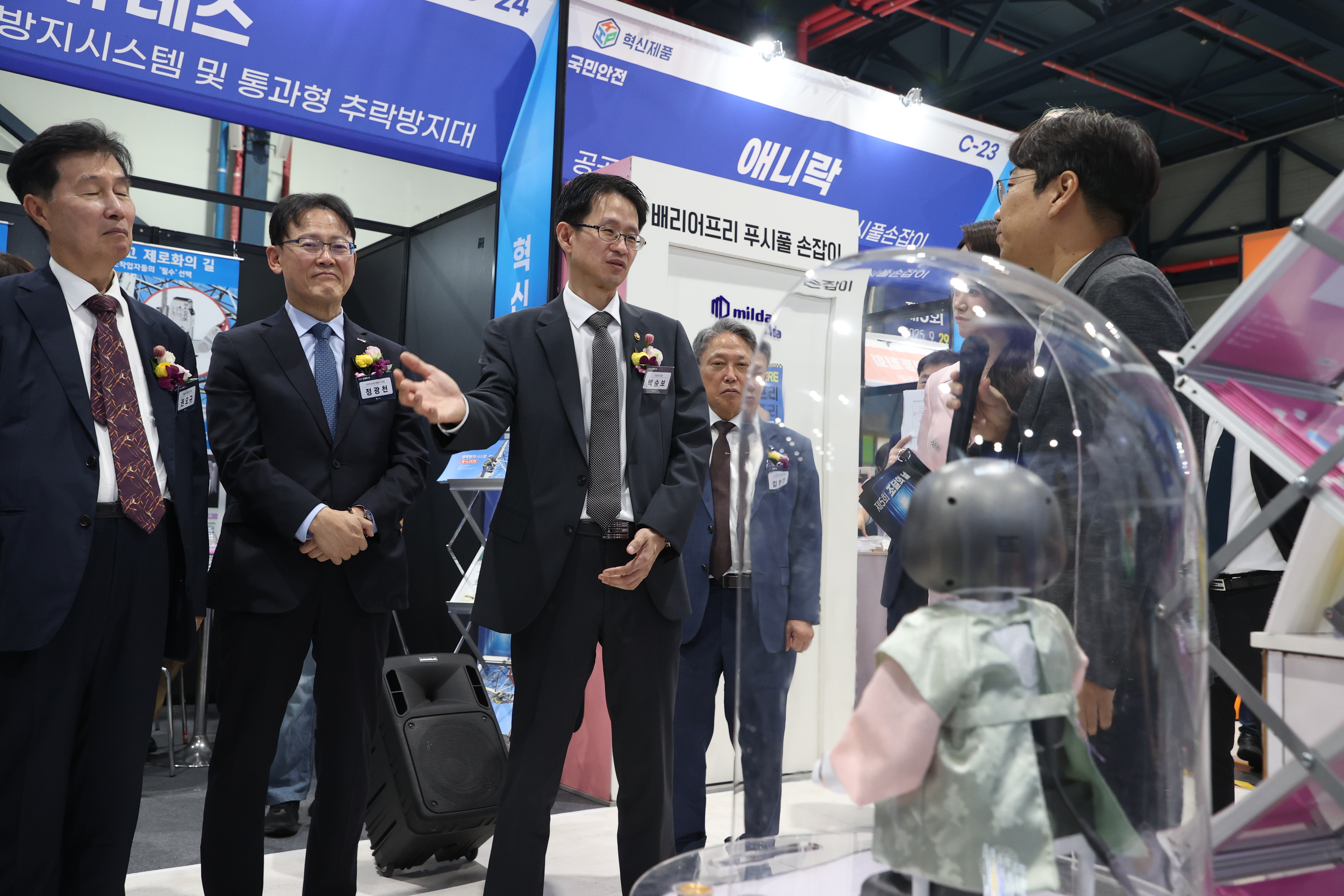 사진 1 : 조달청(청장 백승보)은 9월 29일(월)부터 30일(화)까지 서울 대치동 소재 SETEC에서 열리는「제5회 조달의 날」 행사에서 참여 업체 설명을 듣고 있다.