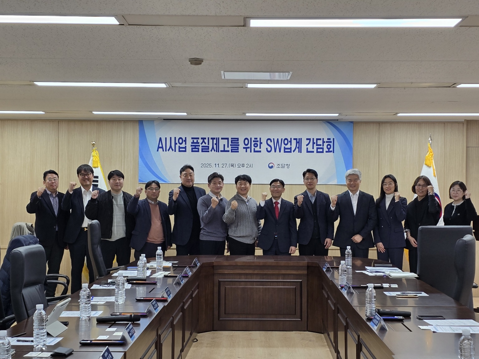 사진 1 : 조달청은 27일 서울지방조달청 대회의실에서 소프트웨어 업계와 인공지능(AI) 정보화 사업 품질 제고를 위한 제안서 평가 방법 개선 방안 등을 논의했다.