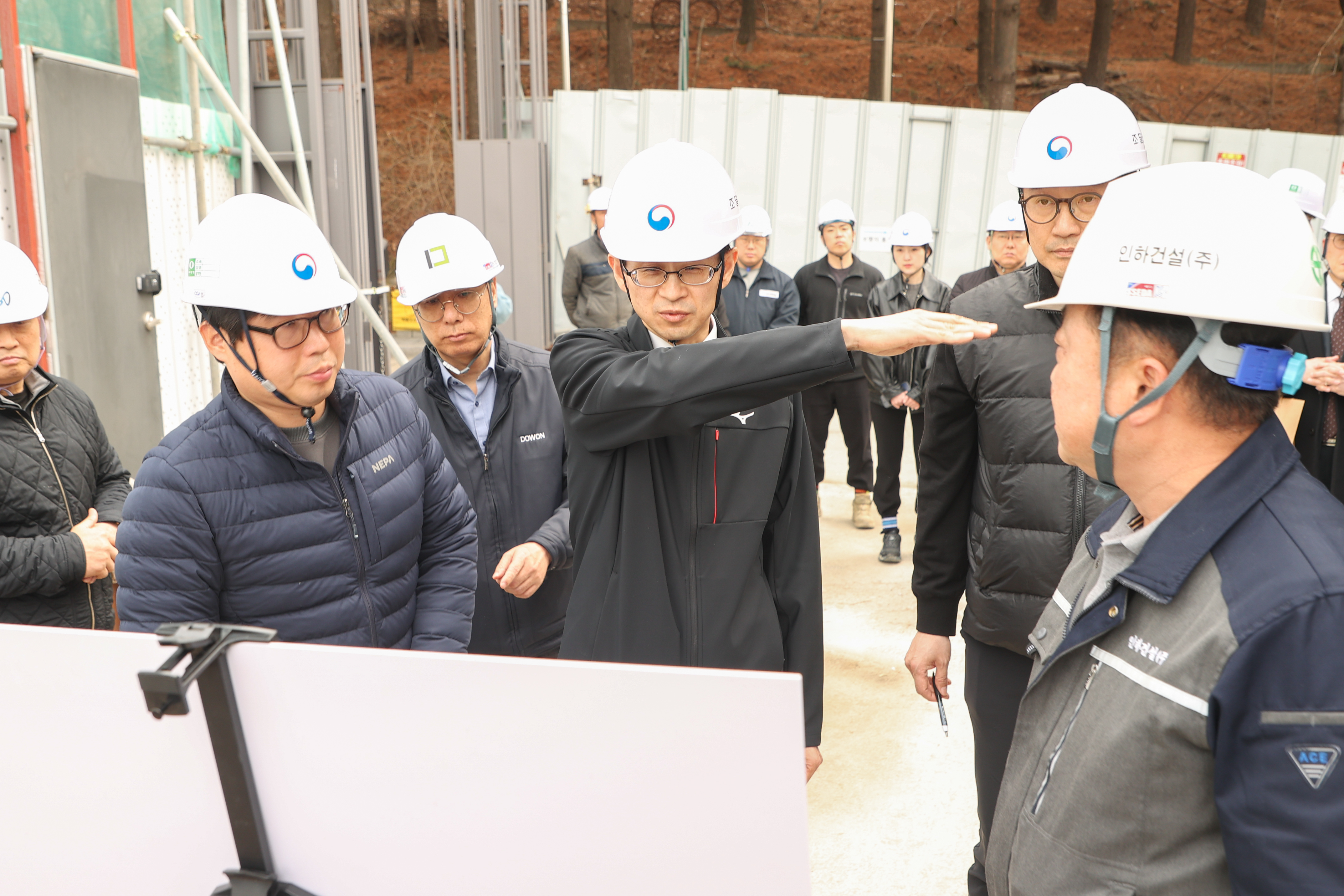 사진 1, 2 : 백승보 조달청장이 5일 대전광역시 유성구 소재 한국전자통신연구원 내 '마중물 플라자 건립사업' 현장을 방문해 해빙기 안전점검을 실시하고 있다.