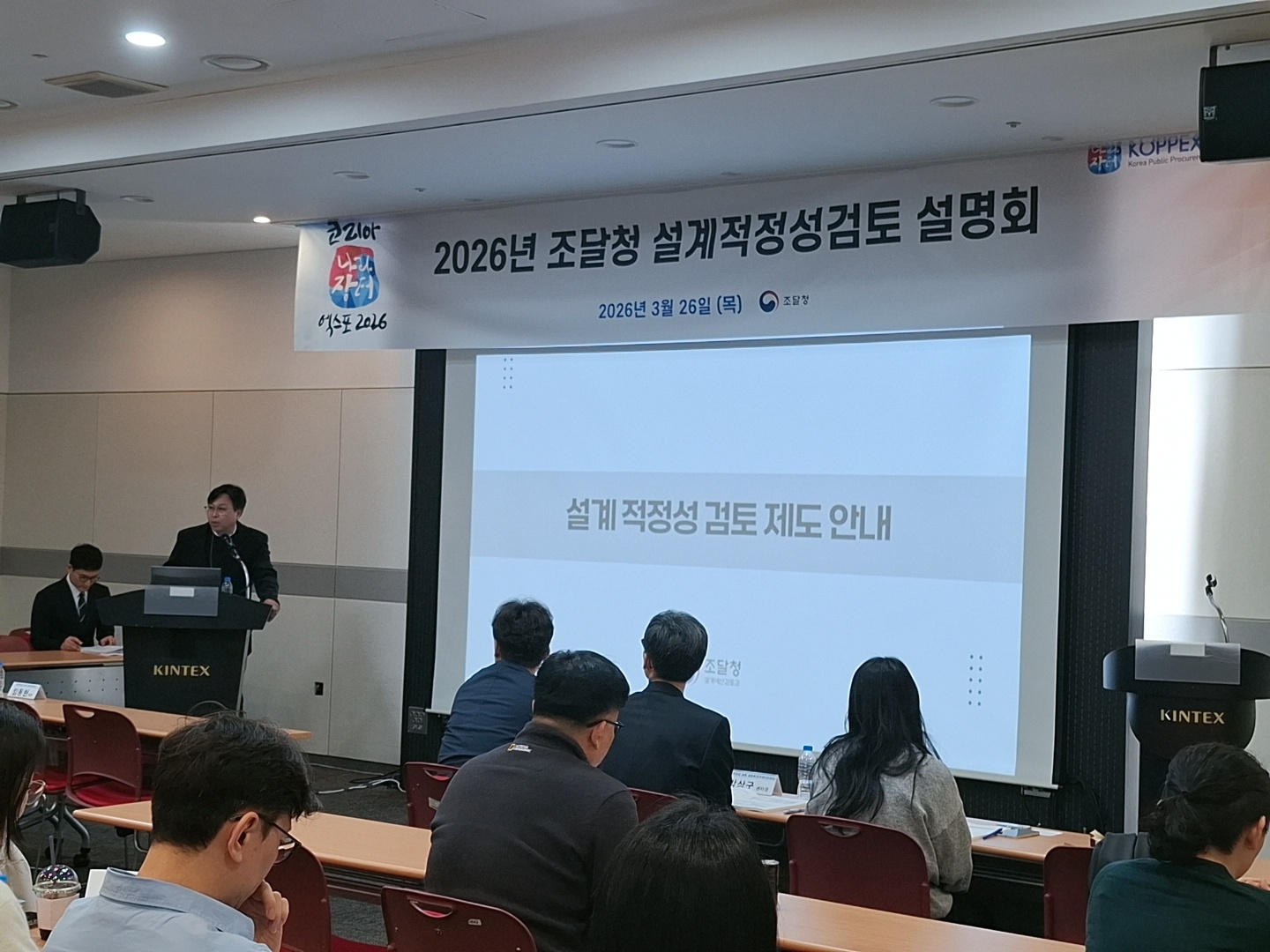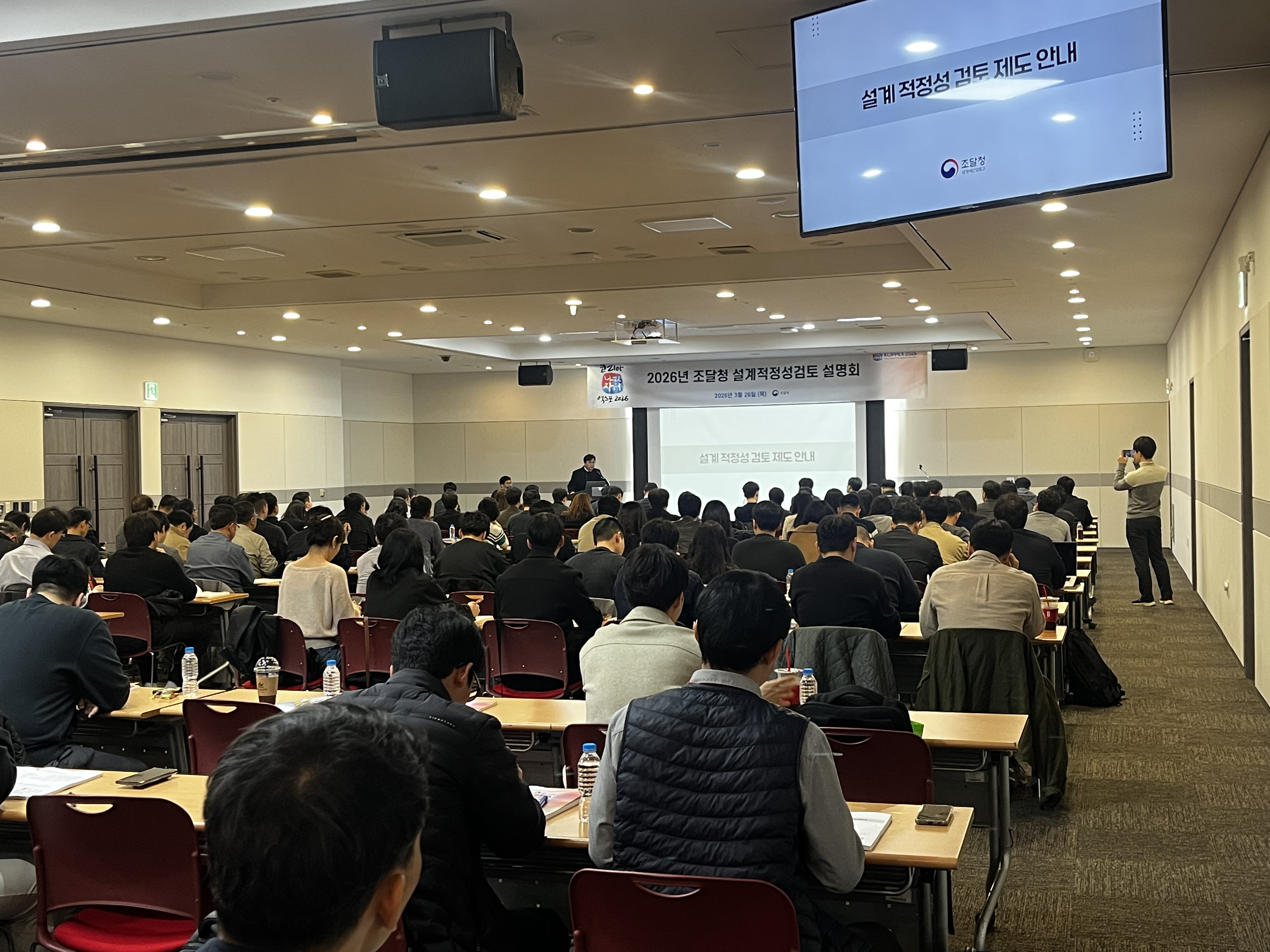 사진 1, 2 : 조달청(청장 백승보)은 26일 경기도 고양시 킨텍스에서 수요기관 관계자 등 250여명을 대상으로 '2026년 조달청 설계적정성 검토' 설명회를 개최했다.
