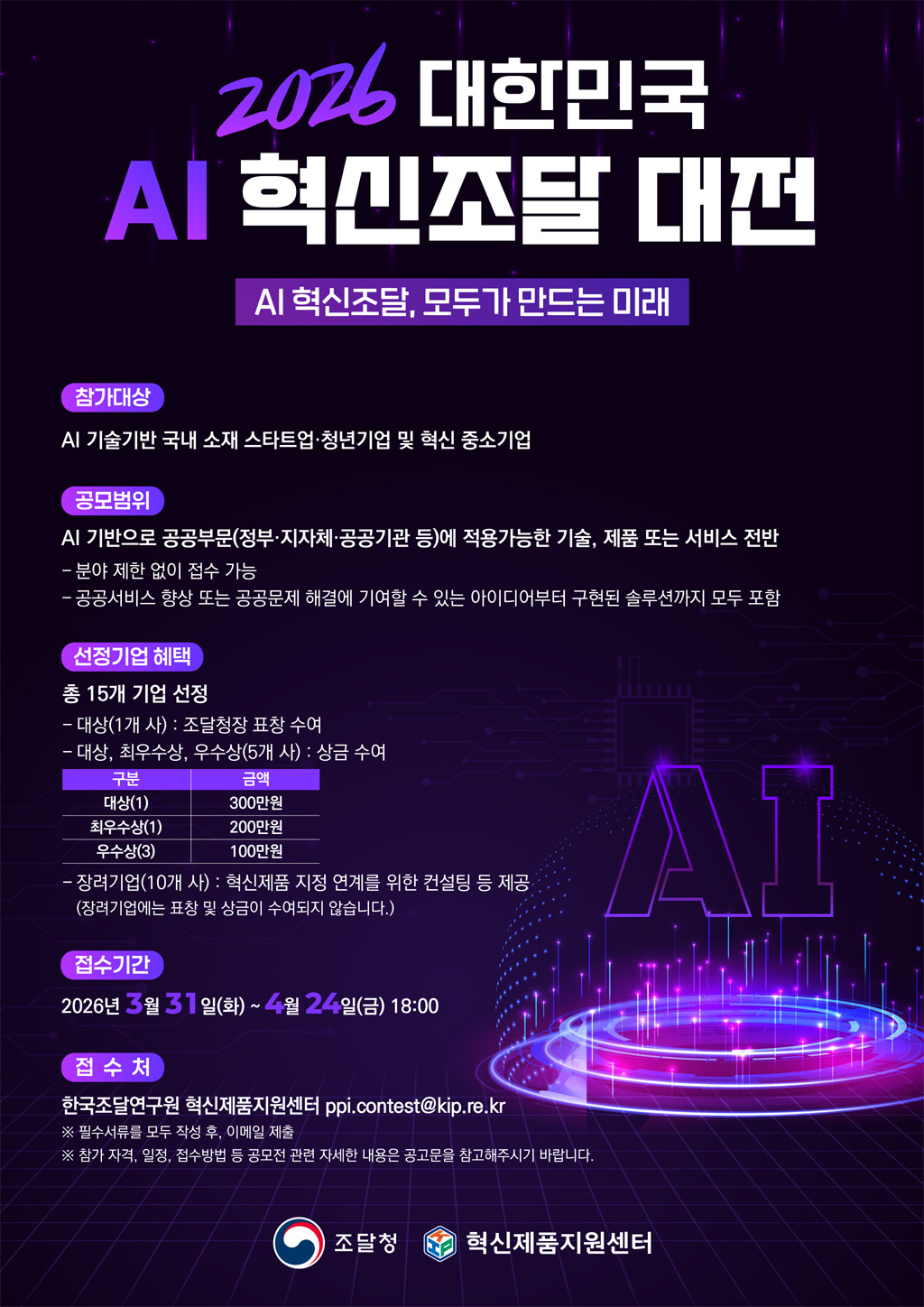 『2026 대한민국 AI 혁신조달 대전』 을 다음과 같이 개최하오니,