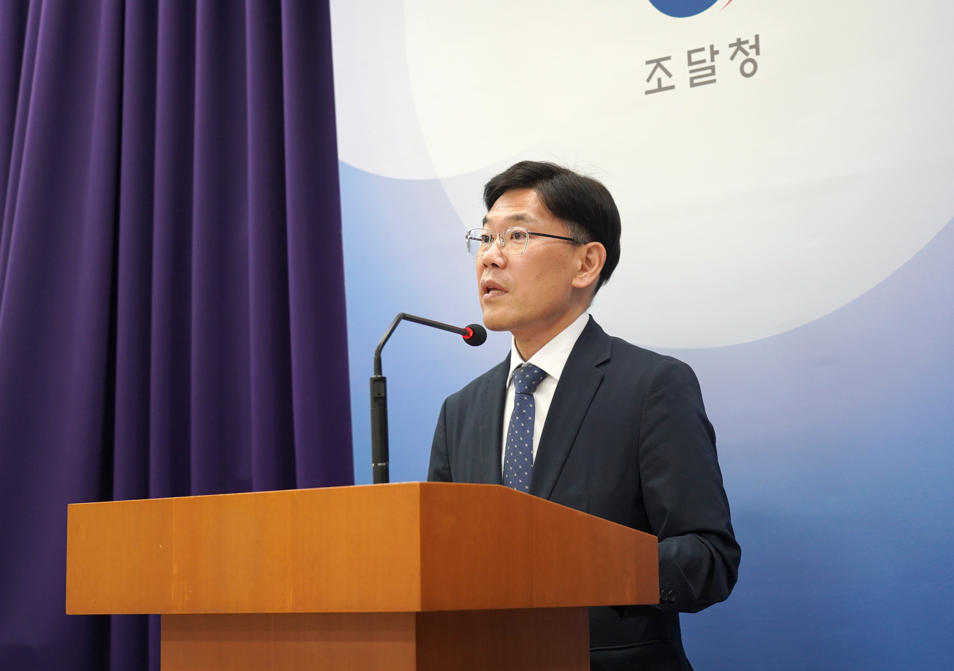 사진 : 강신면 기술서비스국장(단상)이 26일 정부대전청사 기자실에서 브리핑을 통해 '조달청 건축 설계공모 혁신방안'을 발표하고 있다. 이번 혁신방안에는 심사위원 구성 개편, 심사 과정의 자료 공개 확대 등이 담겨 있다.