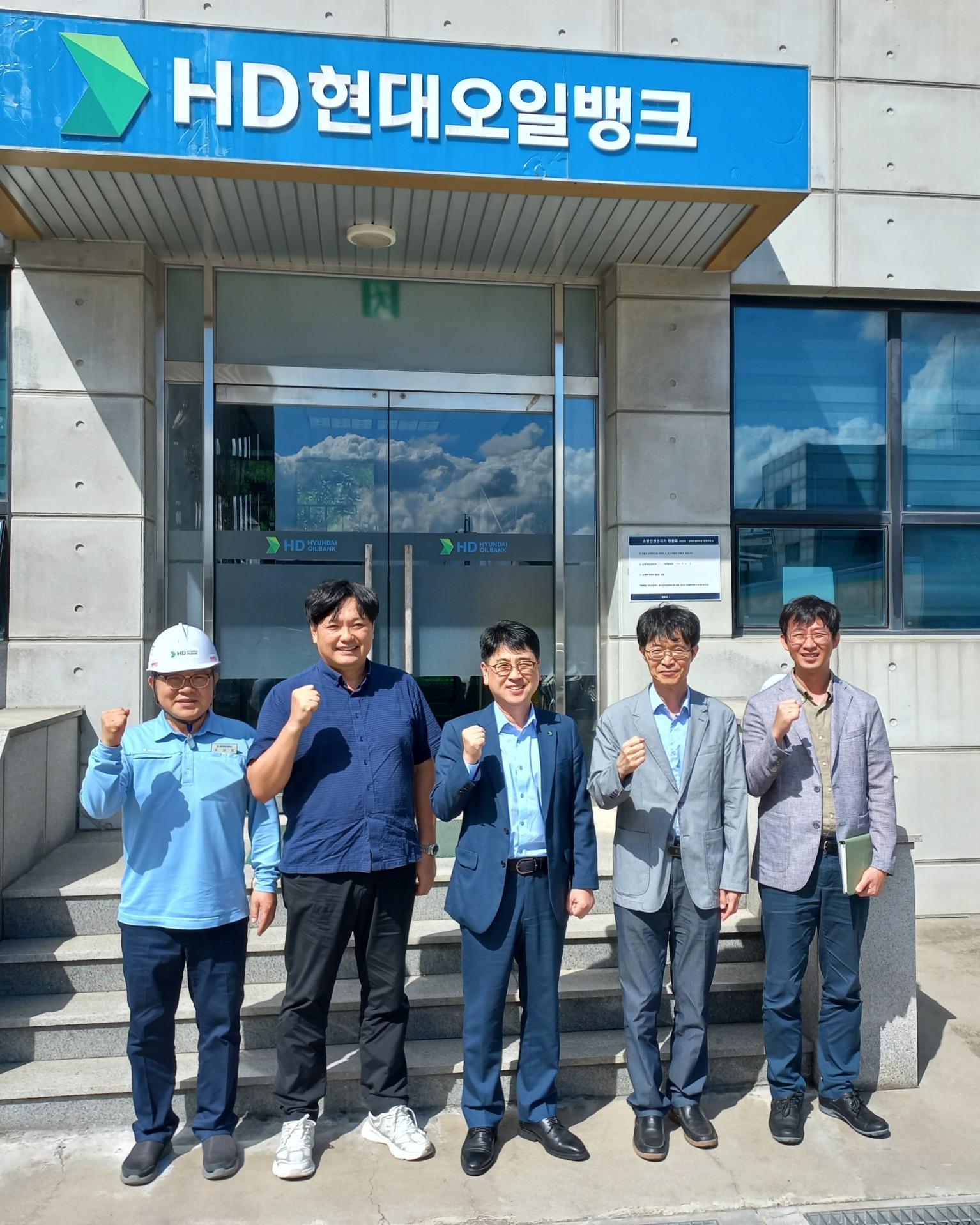 사진 : 강성민 구매사업국장(오른쪽에서 두 번째)이 18일 군납 유류업체인 HD현대오일뱅크의 인천 정유지를 방문하여 현장 목소리를 청취한 후 기념촬영을 하고 있다.