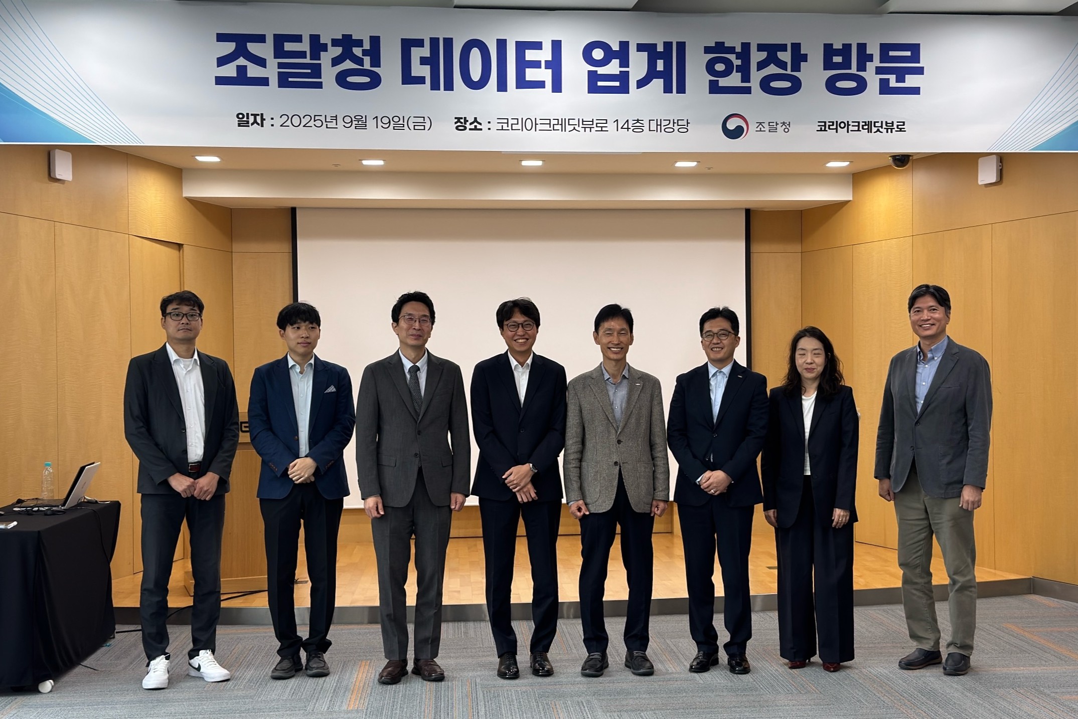 사진 : 전태원 공정조달국장(왼쪽에서 세 번째)이 19일 코리아크레딧뷰로를 방문하여 조달데이터 활용 전략을 논의했다.