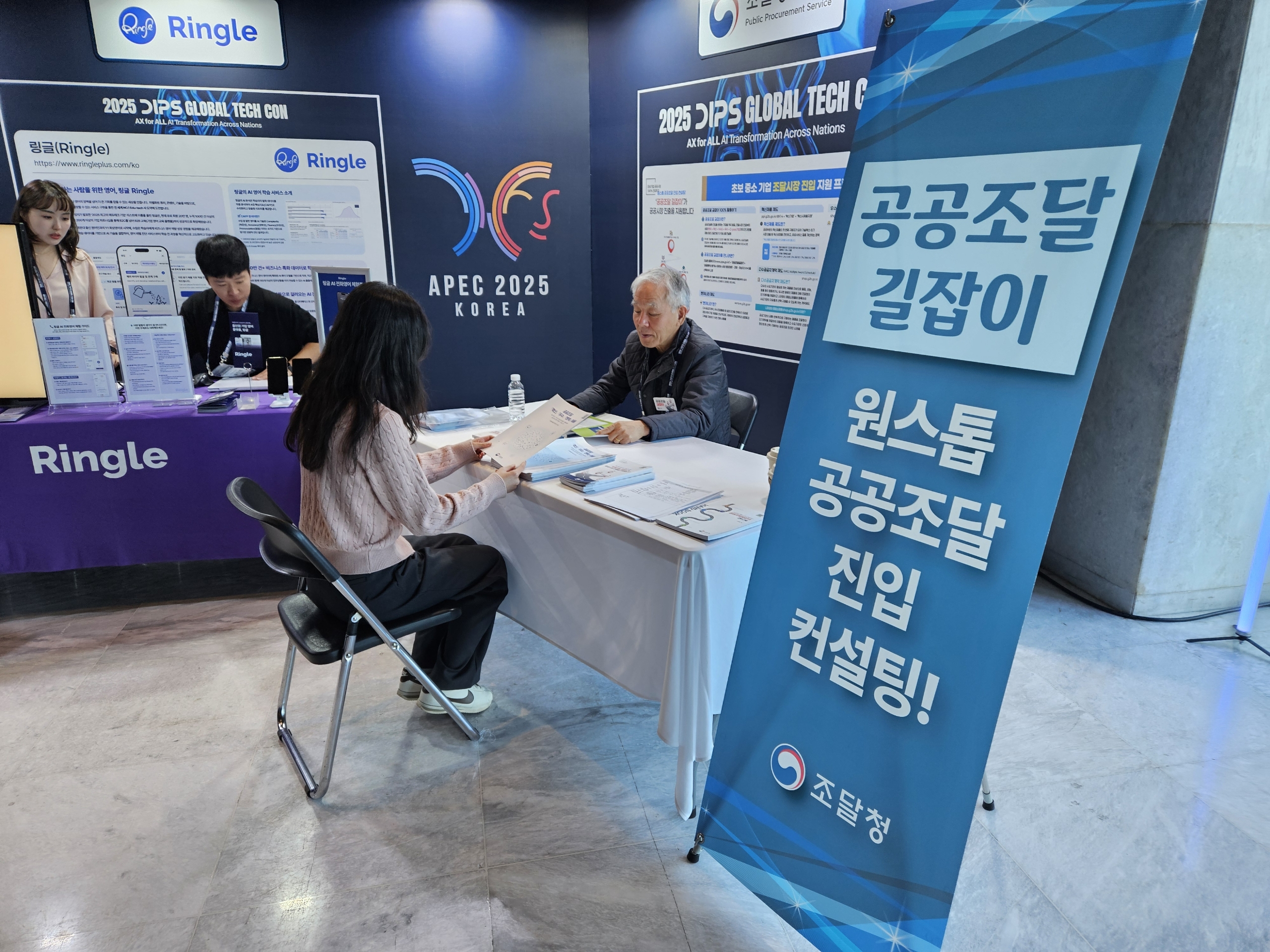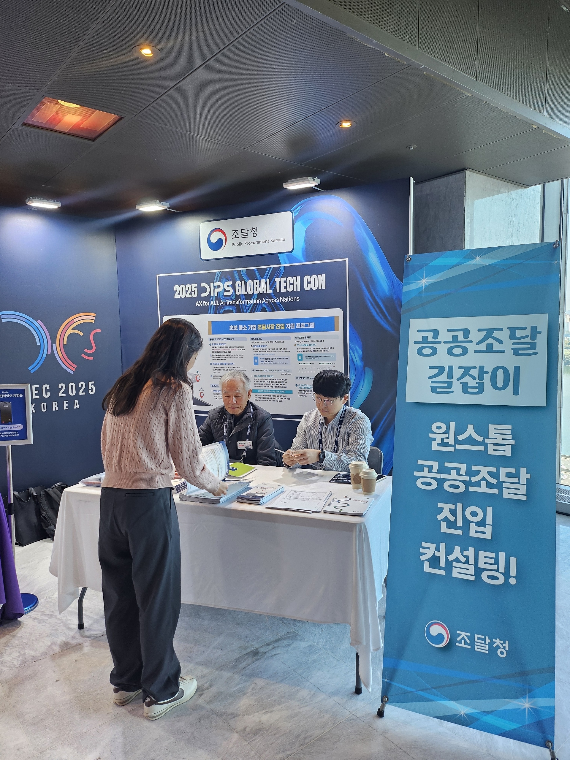 사진 1, 2 : 조달청 공공조달길잡이가 28일 서울 워커힐 호텔에서 공공조달 지원정책에 대해 상담을 하고 있다.
