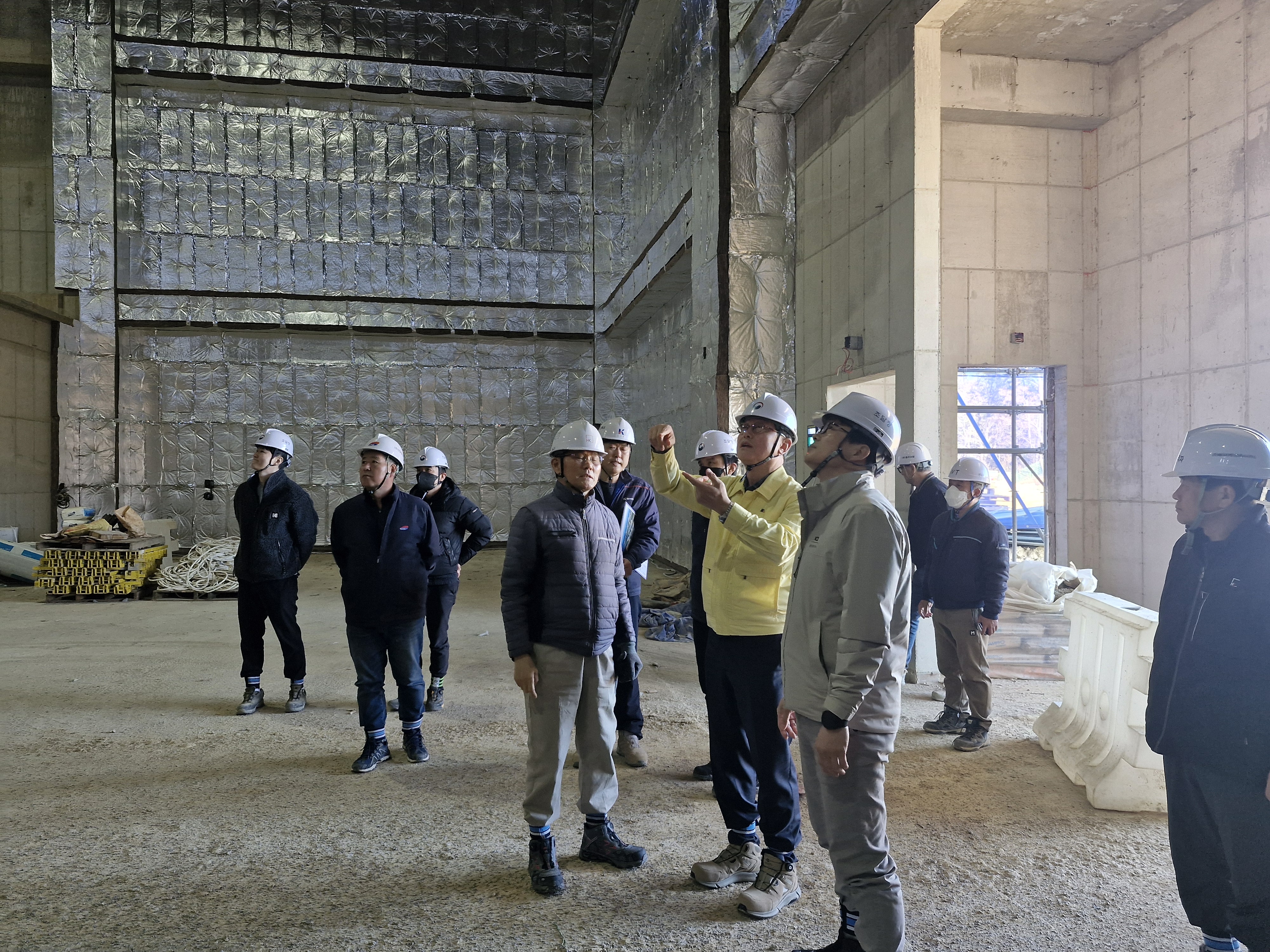 사진 1, 2 : 권혁재 조달청 시설사업국장이 18일 ‘부산촬영소 건립공사’ 현장을 방문해 중대재해에 취약한 고위험 작업에 대한 특별점검을 하고 있다.